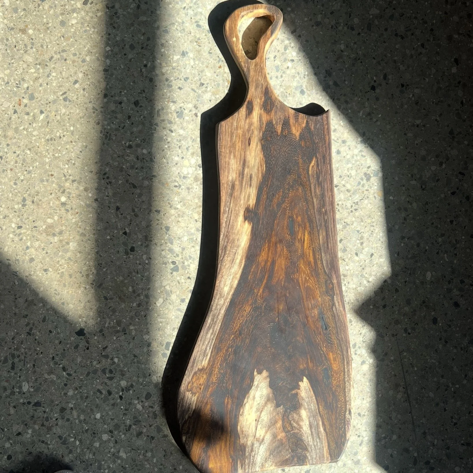 Handcrafted Exotic Wood Serving Board with Inlay Detail